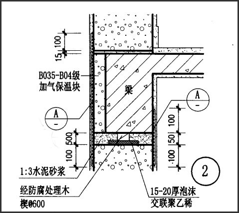 1 混凝土外側(cè)保溫塊厚度應(yīng)通過熱工計算,可以用B035-B04級加氣保溫塊,也可用密度18-20kg/立方米 泡沫聚苯板。