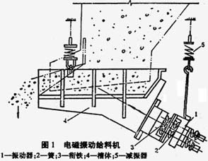 電磁振動給料機基本結構:![]() 電磁振動給料機從結構上主要分為直線料槽往復式(簡稱直槽式)和螺旋料槽扭動式(簡稱圓盤式)兩類,兩者的工作原理基本相同。直槽式一般用于不需定向整理的粉、粒狀物料的給料,或用于對物料進行清洗、篩選、烘干、加熱或冷卻的操作機;圓盤式一般用于需要定向整理的物料的給料, 多用于具有一定形狀和尺寸的物料傳輸的場合。結構如圖1所示,主要由料槽、電磁激振器、減振器組成。激振器又由電磁鐵(鐵芯和線圈)、銜鐵和裝在兩者之間的主振彈簧等構成,是產生振動的激振源,激振器的工作可以通過一定的控制裝置進行控制。 |