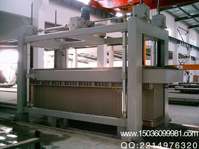 切割機工作原理: 翻轉吊具把模具帶坯體一起空中翻轉90度置切割小車上,脫模把坯體連同側板留在切割小車上,切割小車由電機作動力行走,通過縱切裝置完成縱向切割、銑槽、水平切割;切割小車繼續行走至橫切裝置中央位置停止后,橫切裝置啟動,橫切架自上而下垂直下切完成橫向切割;切割小車再行走至編組吊具處由編組吊具將坯體(連側板)吊至蒸養小車上,切割小車返回原始位置進行下一個切割循環。 切割機主要特點: ⑴、 機型結構精簡實用,便于安裝維修; ⑵、 坯體側立放置使坯體寬度為600mm,高度為1200mm,切割鋼絲短,不易拉斷,不易飄移,切割精度高; ⑶、 縱向切割裝置固定,切割小車行走完成縱向切割,切割時間短。橫切裝置采用鋼絲水平下切,縮短切割鋼絲長度,保證切割精度; ⑷、 坯體側立后可縱向切割時完成銑槽,不需另配槽口加工設備; ⑸、 本機型對坯體作六面切割,制品質量不受模油及模具變形影響; ⑹、 本機型除生產砌塊外還可生產板材; ⑺、 機型切割過程(翻轉、縱切、橫切)分不同工位完成,各工位工作簡化,操作保養方便。 |